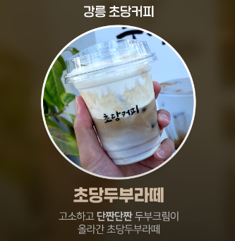 ✅ 시그니처 메뉴: 초당찰떡, 초당두부로 만든 두부라떼가 제일 유명합니다.