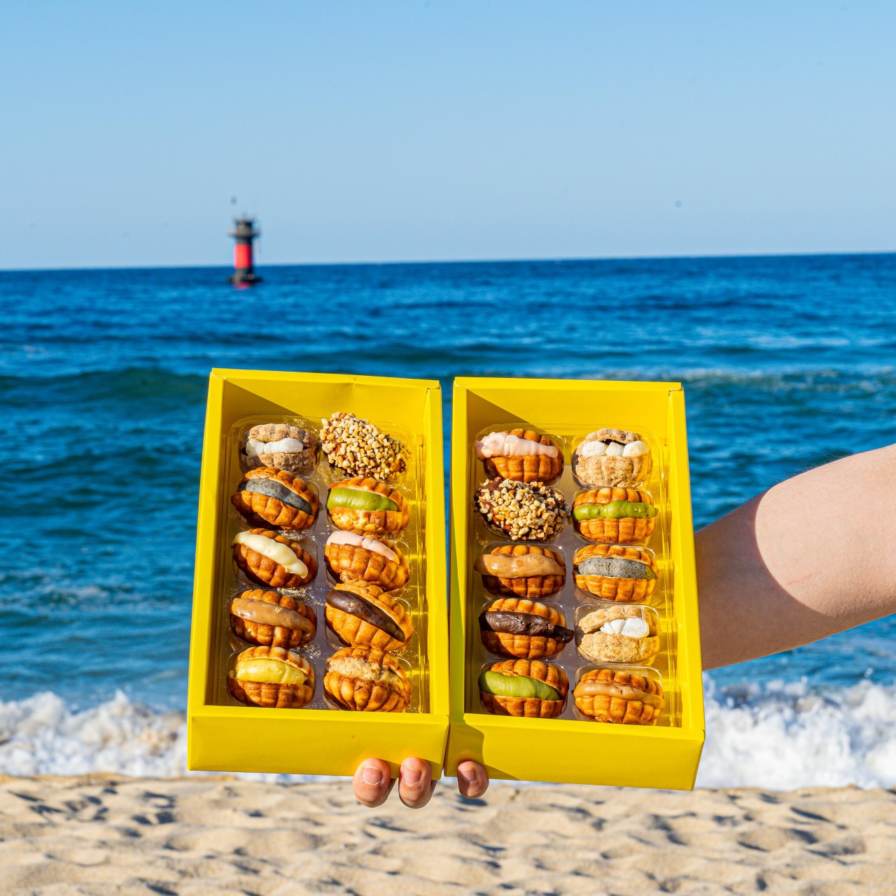 ✅ 조개빵 안에 팥, 호두, 말차, 인절미, 흑임자 등이 들어 있는 10가지의 다양한 메뉴가 있습니다.